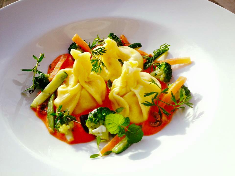 «Non c’è una vera e propria specialità della casa. Ogni singolo piatto è preparato in modo diverso ed ha la sua particolarità sia per quanto riguarda le tecniche di cottura sia per l’accostamento di sapori. Ad esempio, il polipo è cucinato con il roner a bassa temperatura che ne mantiene le qualità organolettiche e la morbidezza garantendo un punto di cottura ottimale. Per altri tipi di piatti utilizzo padelle in porcellana cinese difficilissime da trovare perché garantiscono una cottura ideale a certi tipi di alimenti. Ad ogni modo ciò che accomuna tutti i piatti del menù è la qualità. Utilizzo solo prodotti italiani che arrivano nella cucina del ristorante due volte alla settimana, il martedì e il venerdì, ad eccezione di frutta e verdura che, per ragioni di freschezza, preferisco reperire nel mercato locale. Gli spaghetti, gli strozzapreti, i ravioli sono prodotti da noi, ovviamente solo con farina italiana».