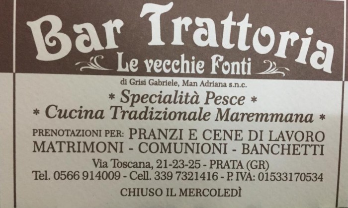 Il menù include antipasti, primi, bistecche alla fiorentina, secondi di mare e di terra, contorni, schiacciate ripiene, calzoni, pizze speciali, dolci e una curata carta dei vini.