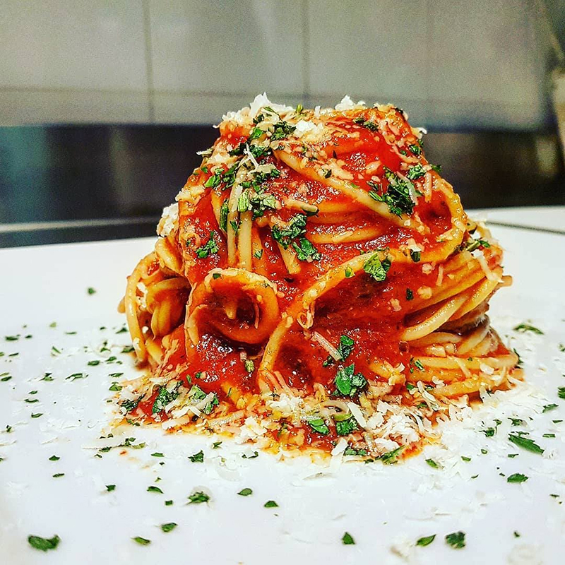 È un aspetto che fa molto e che incuriosisce i clienti. Siamo molto attenti agli accostamenti dei colori tra piatti e pietanza. Infatti cerchiamo di abbinare al meglio i colori del cibo col piatto stesso. Ci piace differenziarci e curare molto l’estetica. Giochiamo tanto su questo aspetto. Il tocco di modernità che abbiamo apportato ai piatti tradizionali si nota proprio grazie all’aspetto visivo.