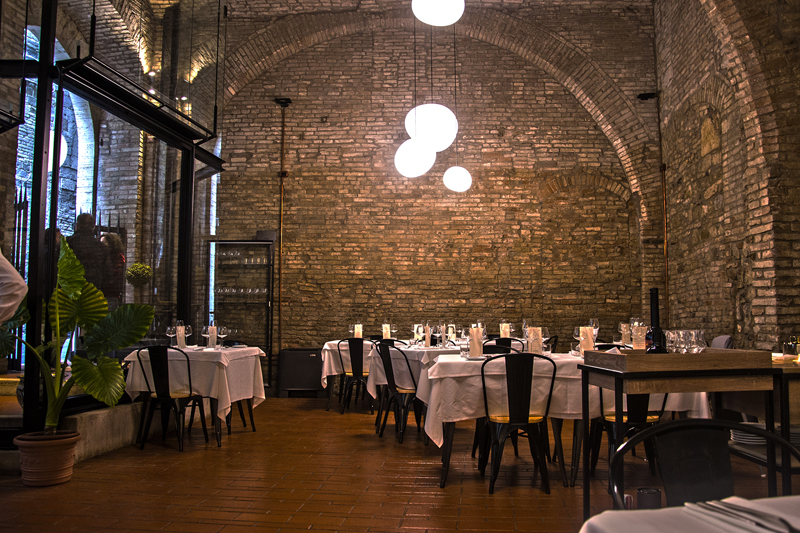 Siamo in un edificio del 1400 molto suggestivo con muri in pietra e soffitti con volte alte. Disponiamo anche di una vetrata esterna di vetro. Siamo immersi in un ambiente con luci soffuse. Vi è una giusta distanza tra un tavolo e l’altro. Da noi il cliente si sente a suo agio in un ambiente confortevole.
