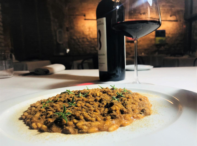 La varietà dei risotti, l’agnello fondente con passito di sagrantino e patate, le selezioni di salumi e formaggi che scegliamo personalmente da piccoli artigiani della zona e tutti i gustosi dessert.